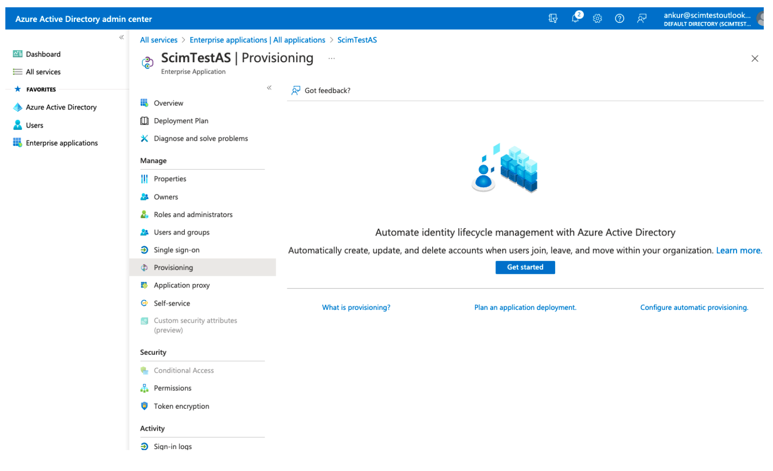 From the left navigation, click Provisioning and then Get started to begin setting up SCIM for your Split application.